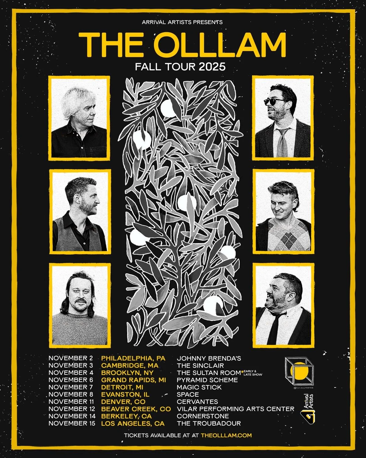 Get Tickets Nov 2 Sun the olllam Live at Johnny Brenda's @ 7:00 PM Philadelphia, PA, United States Tickets Nov 3 Mon the olllam Live at The Sinclair @ 7:00 PM Cambridge, MA, United States Tickets Nov 4 Tue the olllam Live at The Sultan Room @ 7:00 PM Brooklyn, NY, United States Tickets Nov 6 Thu the olllam Live at The Pyramid Scheme @ 7:00 PM Grand Rapids, MI, United States Tickets Nov 7 Fri the olllam Live at Magic Stick @ 7:00 PM Detroit, MI, United States Tickets Nov 8 Sat the olllam Live at Space @ 7:00 PM Evanston, IL, United States Tickets Nov 11 Tue the olllam Live at Cervantes Masterpiece Ballroom @ 7:00 PM Denver, CO, United States Tickets Nov 12 Wed the olllam Live at Vilar Performing Arts Center @ 7:00 PM Beaver Creek, CO, United States Tickets Nov 14 Fri the olllam Live at Cornerstone @ 7:00 PM Berkeley, CA, United States Tickets Nov 15 Sat the olllam Live at The Troubadour @ 7:00 PM West Hollywood, CA, United States Tickets